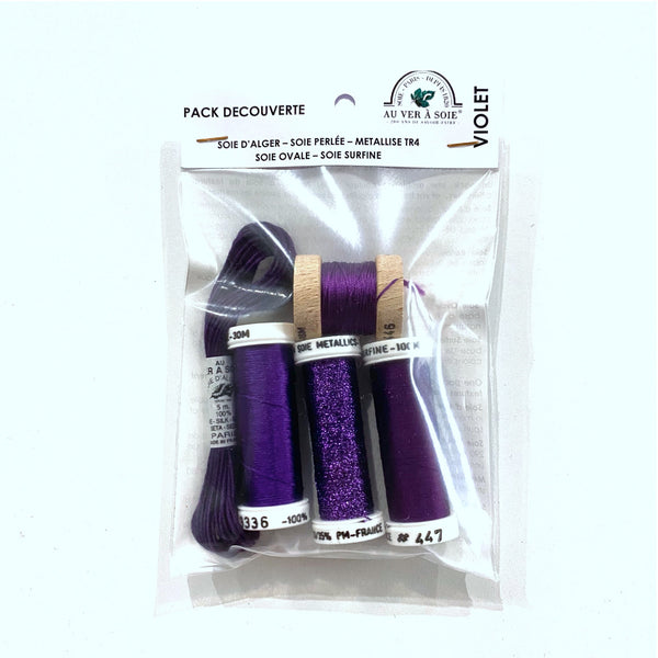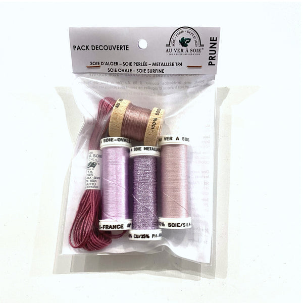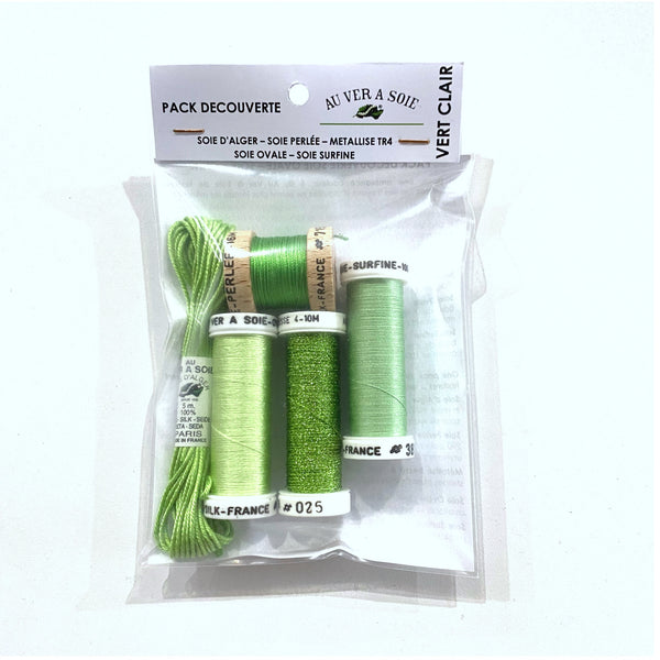 Sample packs from Au Ver à Soie containing 5 different silk threads in shades of one colour